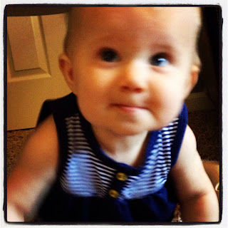 I have been a pretty sucky blogger lately! Life is just flying be as of late. In the last two months, we have packed up our old house, moved to our new house, gotten 85% situated (still have some boxes left to unpack and pictures to hang, etc), and much more! Kendall is now 9 months old, and is standing, crawling all over the place, babbling and screeching, and all in all, a moving machine! From the time she wakes up to the time she goes to bed she is NON STOP! This has been my favorite stage so far. She is very interactive, and is learning new things every day. Right now she can wave hi and bye, give kisses (open mouth of course!), clap her hands, and give high fives. We are pretty sure she is a baby genius, but doesn't every parent think that?!